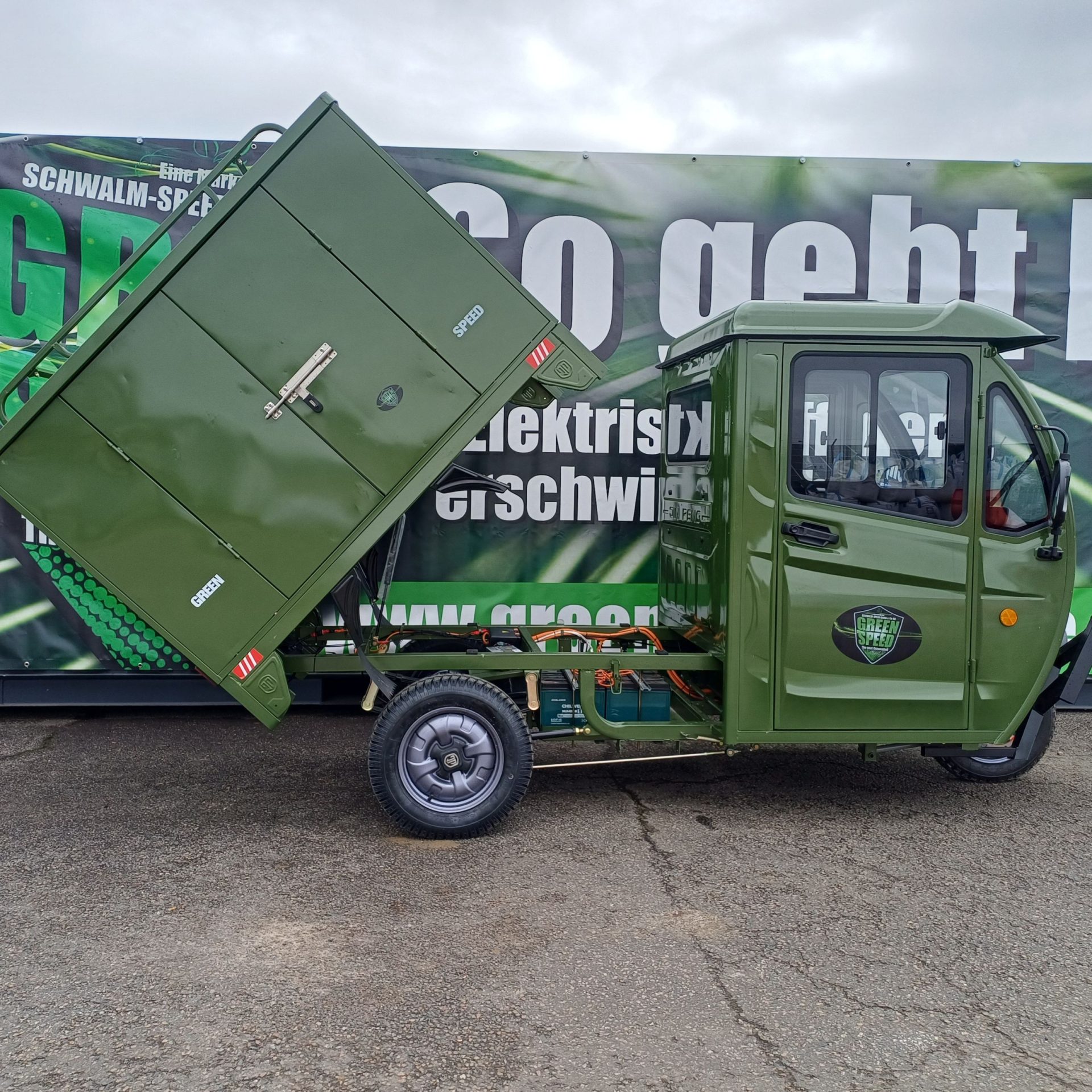 Der Petit von Green Speed ist ein bemerkenswertes Fahrzeug, das sich perfekt für den Einsatz in Haus und Garten eignet. Mit einem großzügigen Platzangebot im Fahrerhaus und praktischen Ausstattungsmerkmalen wie einer Rückfahrkamera, einer kippbaren Kasten, einem Heizungsgebläse, einem Ventilator und einem Dachfenster bietet es sowohl Komfort als auch Funktionalität. Besonders attraktiv ist die Tatsache, dass der Petit bereits ab 15 Jahren mit einem Mopedführerschein der Klasse AM gefahren werden kann. Personen, die vor dem 1. April 1965 geboren sind, dürfen ihn sogar ohne Führerschein nutzen. Ein weiterer Vorteil ist die einfache Auflademöglichkeit an jeder handelsüblichen 220V Steckdose, was den Einsatz des Fahrzeugs noch unkomplizierter macht. Der Petit vereint Praktikabilität und Benutzerfreundlichkeit in einem kompakten Design, das den täglichen Anforderungen problemlos gerecht wird.